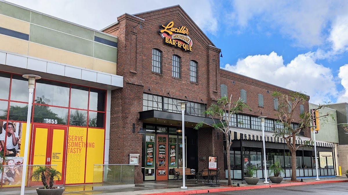 Great food. Fantastic pulled pork BBQ and chicken. Back porch lemonade is to die for. Love the fried pickles. Great atmosphere and friendly service and quick delivery of food. I never ran out of food in between the appetizer and the main course. Whatever location, Lucilles has the same welcoming and friendly vibe. Parking at Covina Mall is hard, but doable.